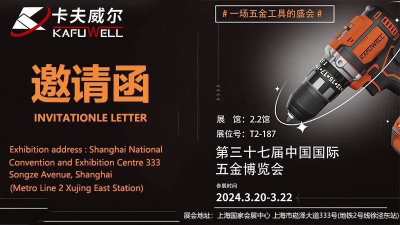 卡夫威尔致力于打造全球知名工具品牌,在展会期间,您将看到我们创新的技术体现的优质产品。我们的品牌工具在不断优化升级,产品工艺也在不断提升,这确保了我们生产的工具都能达到严格标准,我们提供的不仅是五金工具,更是一份信任和便利。欢迎大家来此次中国国际五金博览会位于2.2 展馆T2-187 的卡夫威尔展位,展会具体地址是上海市崧泽大道333号,坐地铁2号线徐泾东站下即可。