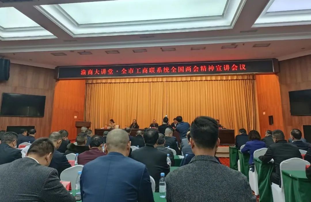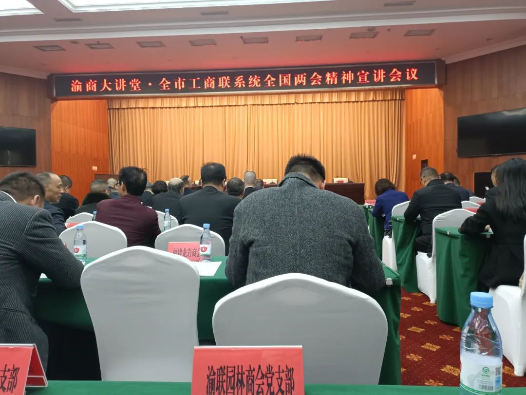 会前,还举行了渝商大讲堂·全市工商联系统全国两会精神宣讲会议,传达学习习近平总书记在全国两会期间的重要讲话精神和全国两会精神,部署全市工商联系统学习宣传贯彻工作。市工商联领导、部室负责人,市工商联社会组织综合党委委员,各商(协)会党组织书记等共150余人参加会议。 重庆市园林商会