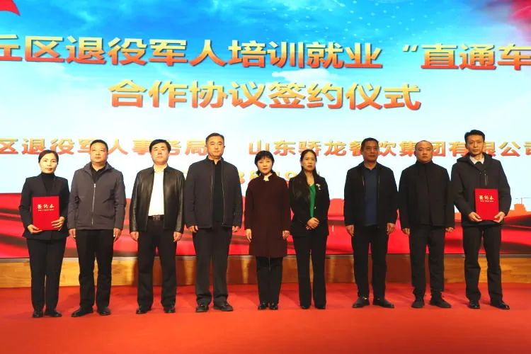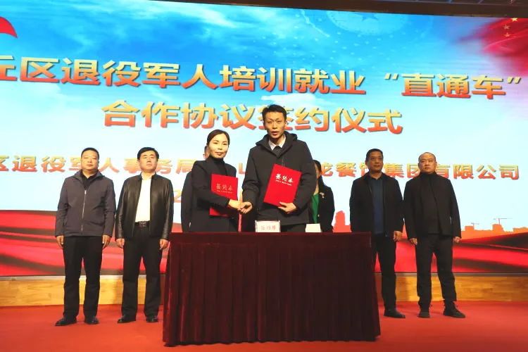 区退役军人事务局与山东骄龙餐饮集团有限公司签订培训就业“直通车”合作协议。