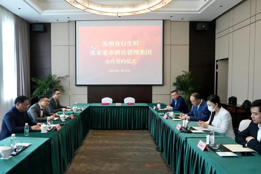 张家港市酒店管理集团是张家港市市属一级国有企业,致力于富有吴文化特色的酒店品牌培育和发展,目前已成长为集酒店管理、物业管理、旅游服务、绿色生态农副产品基地等一体的综合性集团。此次合作,双方将依托食行生鲜品牌优势、数字化运营能力和酒店集团资源优势,构建高效、可持续的供应链体系,建立现代化、数字化全产业链生鲜食品冷链配送中心,为张家港市企事业单位和居民提供高效、便捷的生鲜集采、集配和线上生鲜消费服务。食行生鲜联合创始人、副总裁方春旗在现场致辞中表示,食行将与张家港市酒店管理集团一起携手共进,不断优化农产品“产、供、销、配”的质量和效率,丰富张家港城市生活应用场景,并不断提升城市“菜篮子”保供的精准度、丰富度和满意度,为张家港城市生活增添更多的民生福祉。