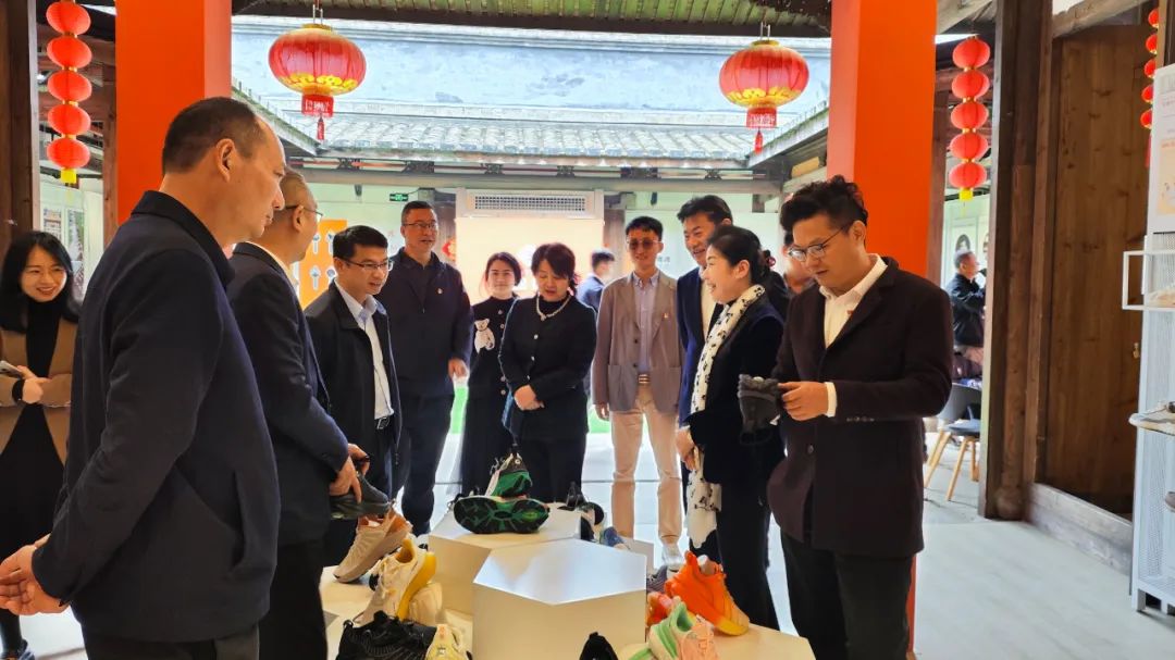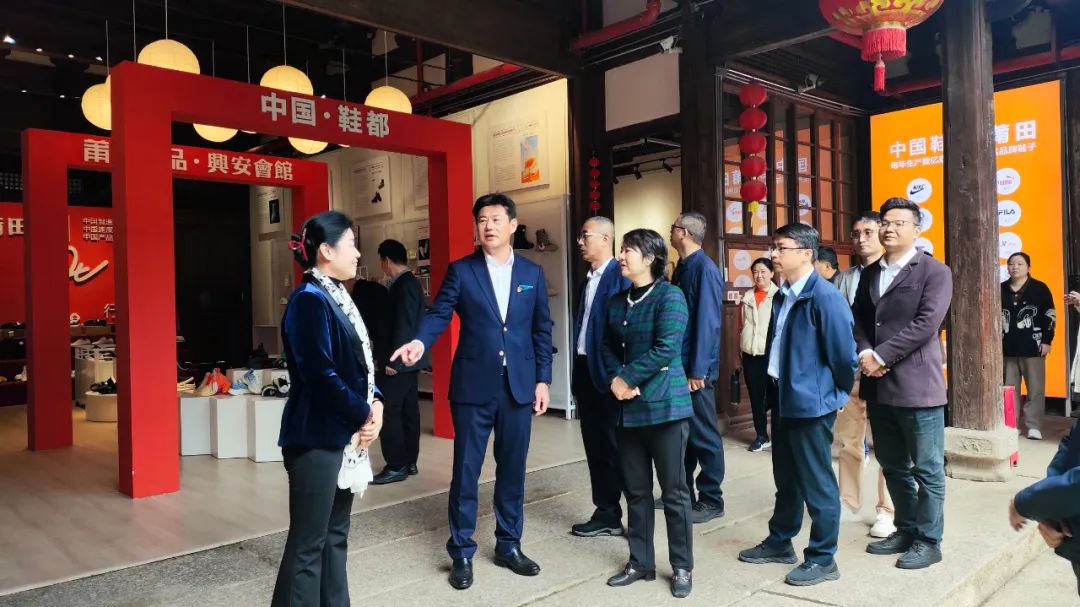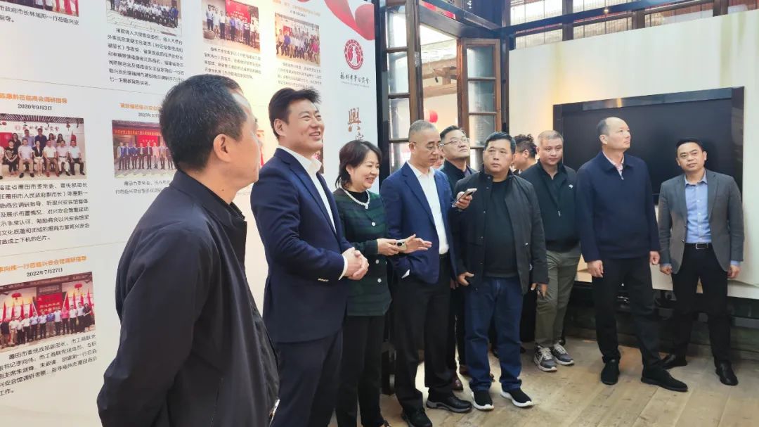在第二进文化墙参观部分千年莆田、独特莆田的历史文化、特色产业、非遗民俗。在第二进“莆田优品”馆参观展陈的莆田鞋服、食品、工艺美术品、文创产品以及非遗产品。在文创工艺品展厅,吴金辉秘书长如数家珍地介绍了展品的特色和背后的故事,感受莆田工艺技术的独特魅力。