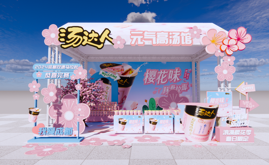 汤达人浪漫樱花季春日限定——粉色樱花泡面免费尝、精美礼品任您选、拍照打卡留回忆、热水冲泡暖心田,汤达人元气满满助力奔跑!