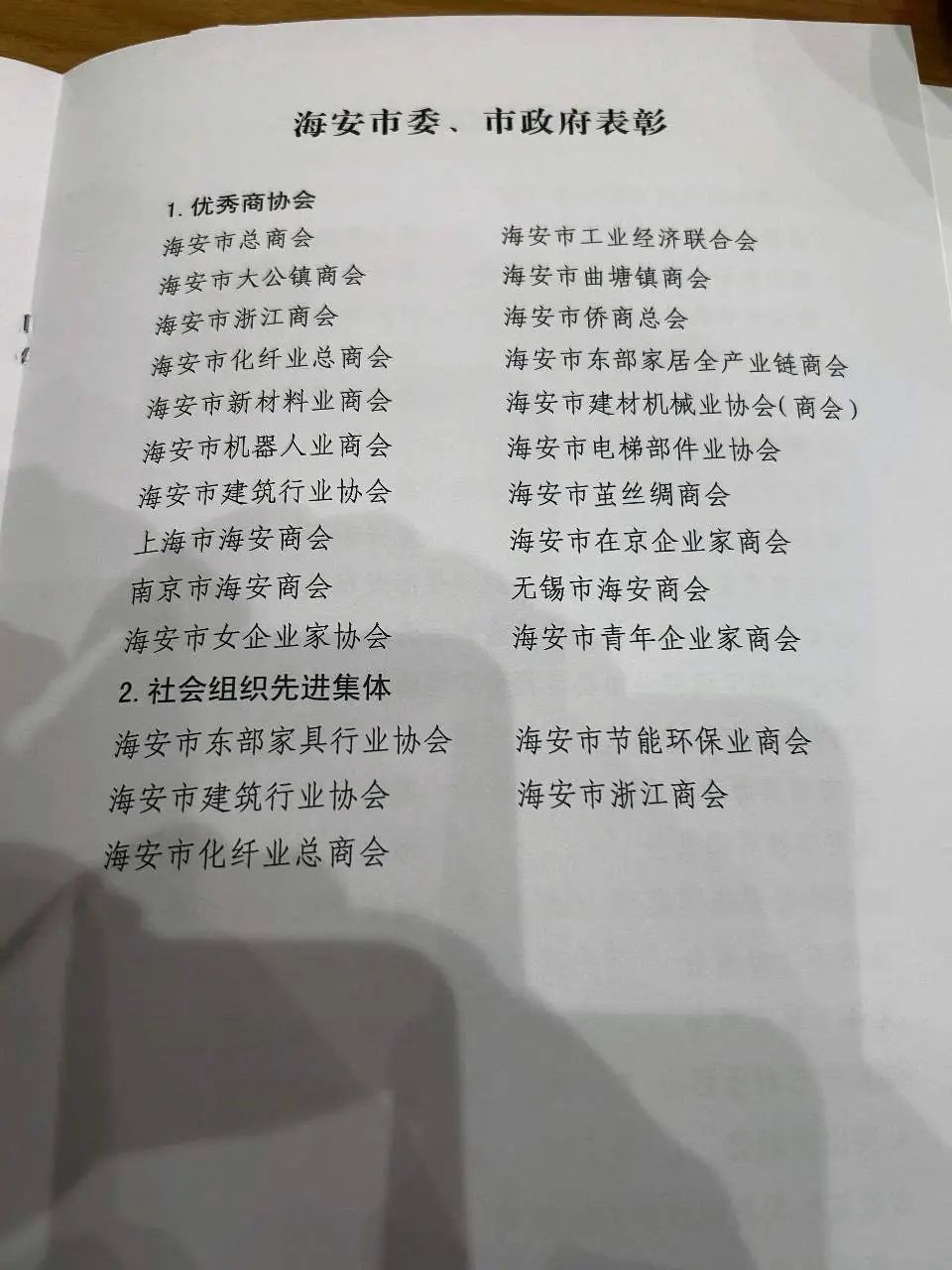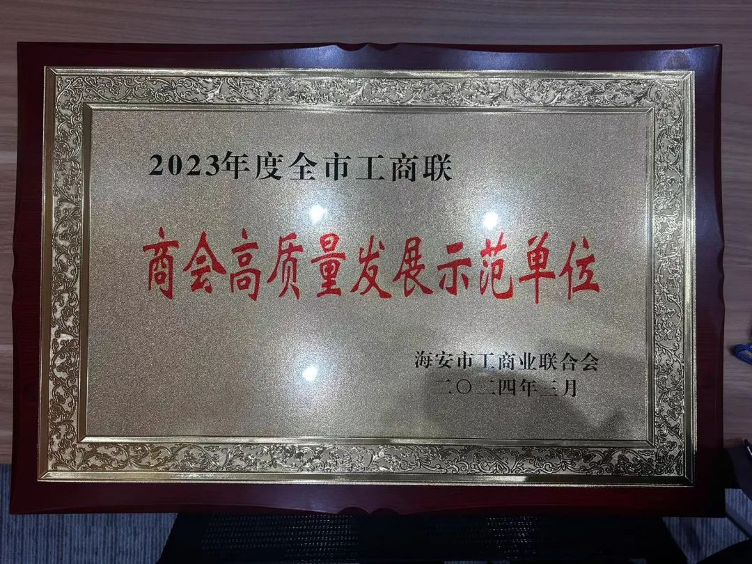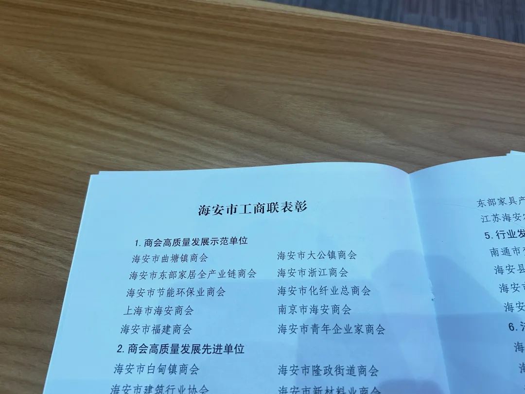 南京市海安商会获得海安市委市政府表彰,被评为海安市2023年度优秀商会。同时南京市海安商会也获得海安市工商联表彰,被评为2023年度商会高质量发展示范单位。