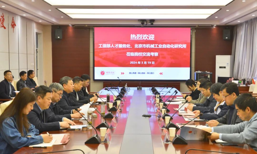 我校党委书记姜瑞林在座谈会上致辞,代表学校对工信部和北京市机械工业自动化研究所专家到我校考察交流,表示热烈欢迎和诚挚感谢。他介绍了我校的发展概况,强调邯郸学院作为市属本科院校,要充分利用学校优势,以主动服务地方经济社会发展为导向,以特色发展为抓手,大力推进产业学院建设,主动对接地方、行业企业开展产学研合作,通过与工信部和北自所合作,提高学校人才培养、科学研究的水平,提升服务地方区域发展的贡献力和支撑力,促进学校高质量发展。