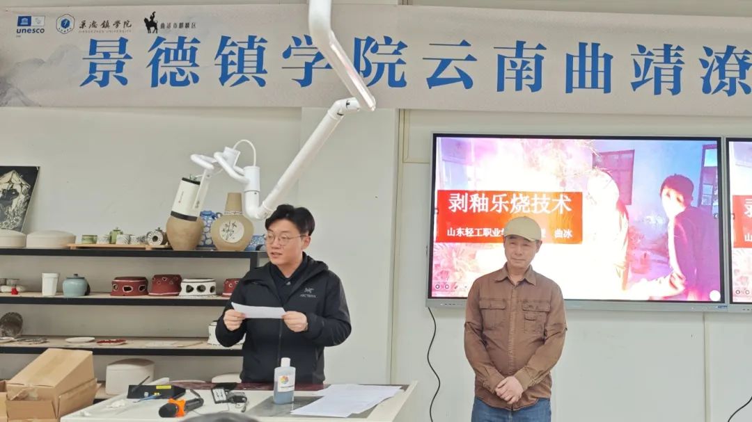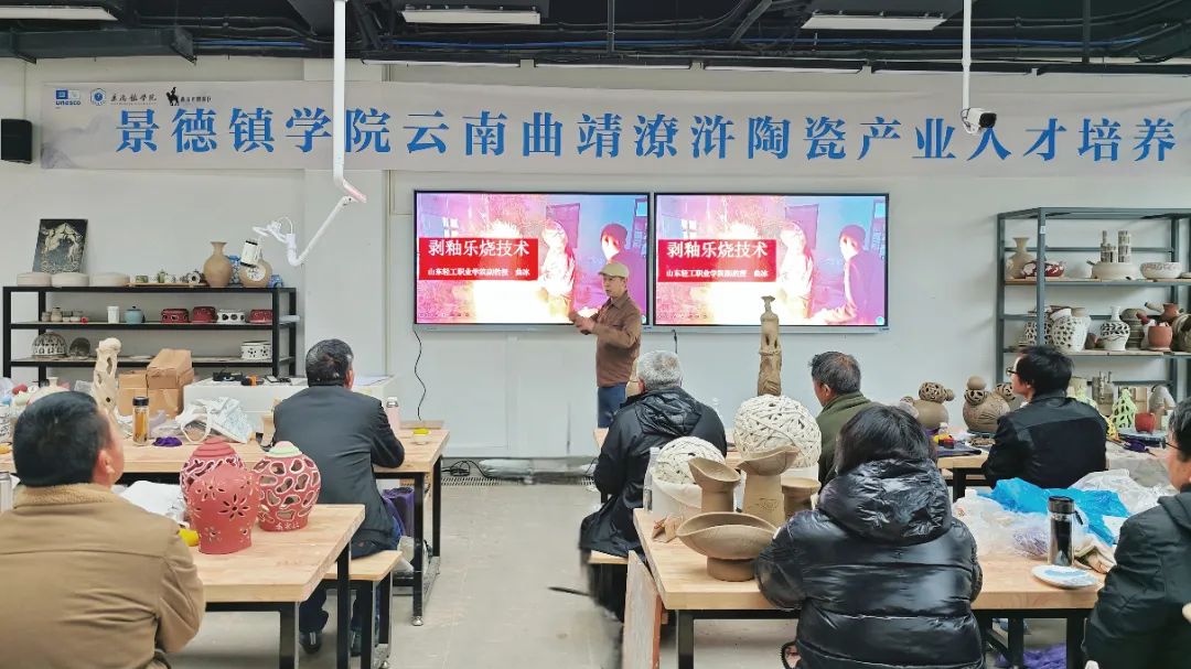 为深入贯彻落实习近平总书记考察江西时的重要讲话精神,牢记“建好景德镇国家陶瓷文化传承创新试验区,打造对外文化交流新平台”的殷殷嘱托,强化技能人才培养、提高人才培养质量。3月12号下午14点,云南曲靖潦浒陶瓷产业人才培养项目系列讲座第十一讲在景德镇学院陶瓷美术与设计艺术学院陶艺实训中心举行。本次讲座由山东轻工职业学院副教授曲冰主讲,主题为《剥釉乐烧技术》。