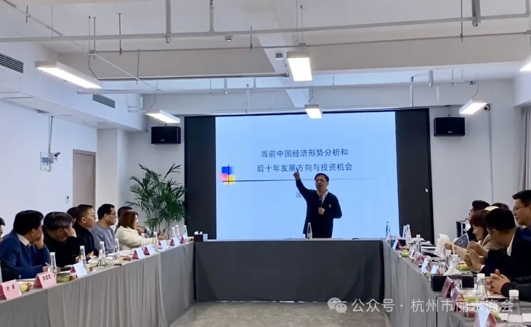2024年3月17日下午,杭州市丽水商会2024年首次会长会议在爵优科技大厦顺利举行。参加本次会议的有会长徐荣培,常务副会长毛雪波、王斌、王登福、占志强、刘乙平、陈哈利、赵继英、徐占源、徐遥杰、陶礼钦、傅石林、蔡定彩,副会长王宏伟、叶孝、叶大梅、叶金英、吕南进、刘红伟、张叶宏、张隆武、陈新、陈武军、陈伟明、范青松、季泽明、周雅琴、姜建基、金建军、麻坚强、潘清尉,监事朱旭峰、祝丽萍以及理事林久余等参加会议。会议还特邀浙商主席团主席、浙江大学校外硕士生导师沈一慧为大家作宏观经济形势讲座。