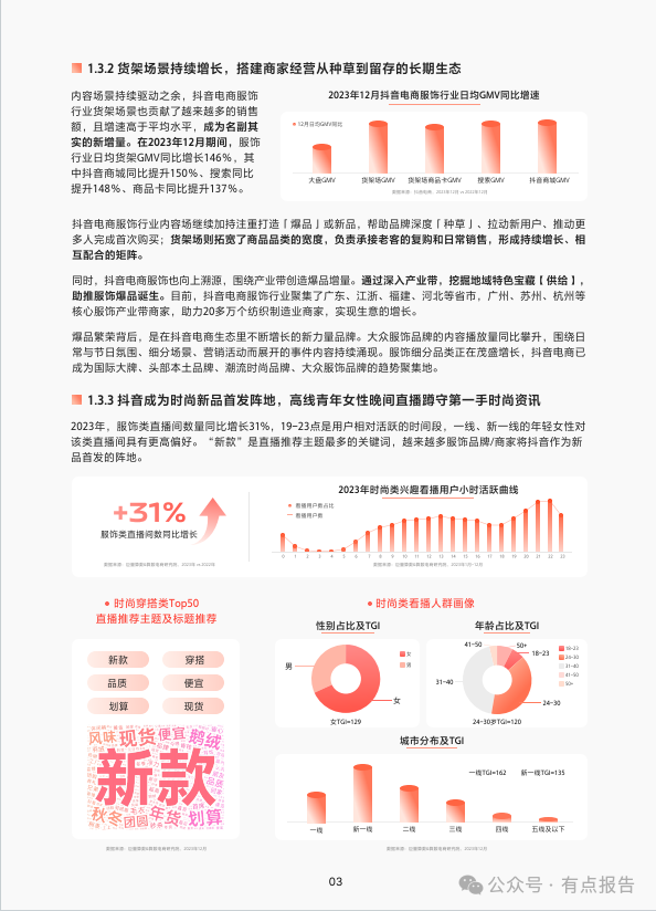 服饰潮流的美学变迁,背后是集文化内涵、理念元素、消费体验等于一身的时间沉淀。以抖音为代表的内容平台逐渐成为当下潮流时尚的传播与消费阵地,也在整个商业生态中,展现出强大的“发现力”和“转化力”。多元、交互的内容形式,即看即买的创新购物方式,为消费者带来悦己式的灵感来源与沉浸式的消费体验对于业内更多角色而言,无论种草还是品效协同,一切都可被清晰度量。