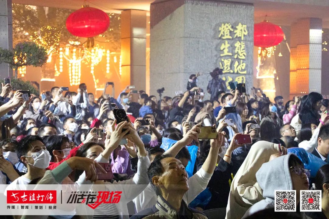 灯都生态湿地公园内人流如潮,公园灯火璀璨、流光溢彩,音乐喷泉随着音乐变幻。公园外,观众熙熙攘攘,政府领导、嘉宾聚集于此,翘首盼望这场即将来临的视觉盛宴。