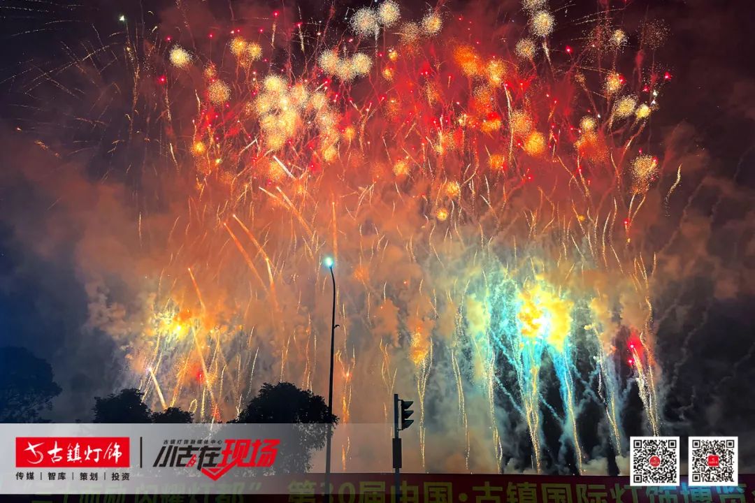 当日晚上,“三十而励 闪耀灯都”第30届中国 • 古镇国际灯饰博览会烟花汇演在灯都生态湿地公园盛大举行。