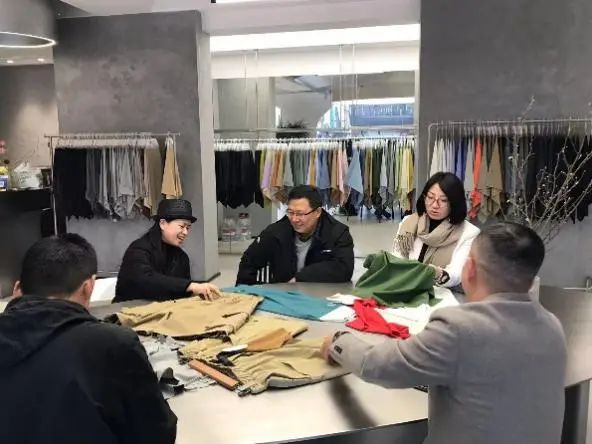 公司经理沈知峰首先对大家的到来表示热烈欢迎,带领大家参观了公司的生产车间、样品室以及销售门店,详细介绍了公司在面料开发、产业应用等方面取得的成果。表达希望能与浙江理工大学服装学院在产业服务、人才培养、科技研发、品牌拓展等方面开展合作的愿望。