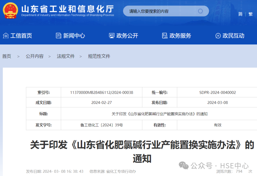 HSE中心【一图读懂】《山东省化肥氯碱行业产能置换实施办法》