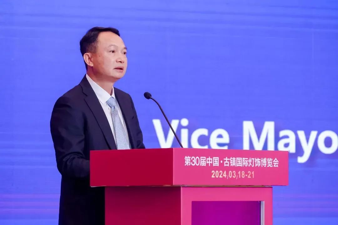 △中山市人民政府副市长欧阳锦全中山市人民政府副市长欧阳锦全表示:“当前,深中通道即将开通,中山正积极融入粤港澳大湾区发展,大力建设省级改革创新实验区,向湾图强、向高而攀!中山将坚持实体经济为本、制造业当家,传统产业、新兴产业、未来产业并举,积极培育壮大新质生产力,深入实施‘大产业、大平台、大项目、大企业、大环境’五大提升行动,大力打造包括照明灯饰在内的新时代‘十大舰队’,以新技术、新业态、新模式赋能照明灯饰等产业新发展,培育壮大古镇灯饰等国家和省外贸转型基地。我们将深入实施工业产品质量提升三年行动,以五‘严’五‘加强’十项措施,全面提升照明灯饰等重点工业产品质量,全力推动‘中山制造’迈向‘中山精造’,让‘古镇灯饰’‘中山灯饰’成为高质量的代名词,让中山品牌扬帆出海、照亮全球。”