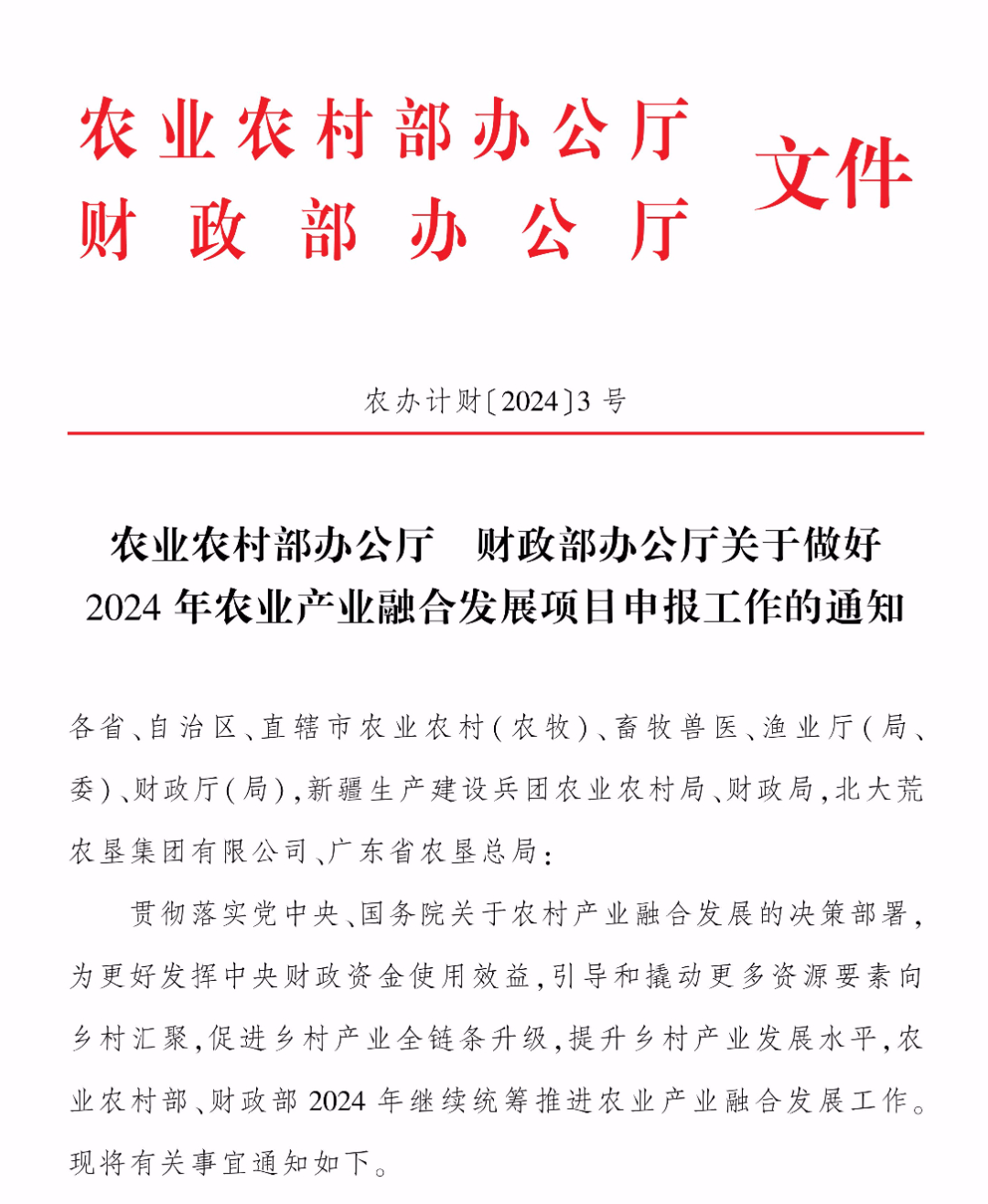 2024年创建国家现代农业产业园、优势特色产业集群、农业产业强镇的具体申报条件、资金支持等,总体上继续参照《农业农村部办公厅、财政部办公厅关于做好2023年农业产业融合发展项目申报工作的通知》 (农办计财〔2023〕5 号) 执行。纳入书面审查的项目,农业农村部、财政部将组织专家进行严格审核,其中对农业产业强镇项目还将抽取不少于 10% 的项目,采取公开答辩等方式进行复核;符合条件的纳入批准名单,审核不通过的直接取消资格,不再递补。对纳入竞争遴选的项目,农业农村部、财政部将组织专家采取公开答辩等方式,择优纳入批准名单。