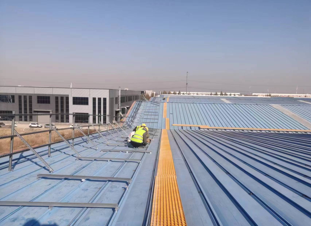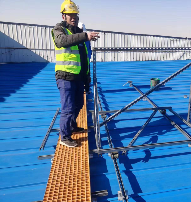 光伏组件安装前,将屋面原有的损坏的、漏雨的锈蚀点做防水处理。