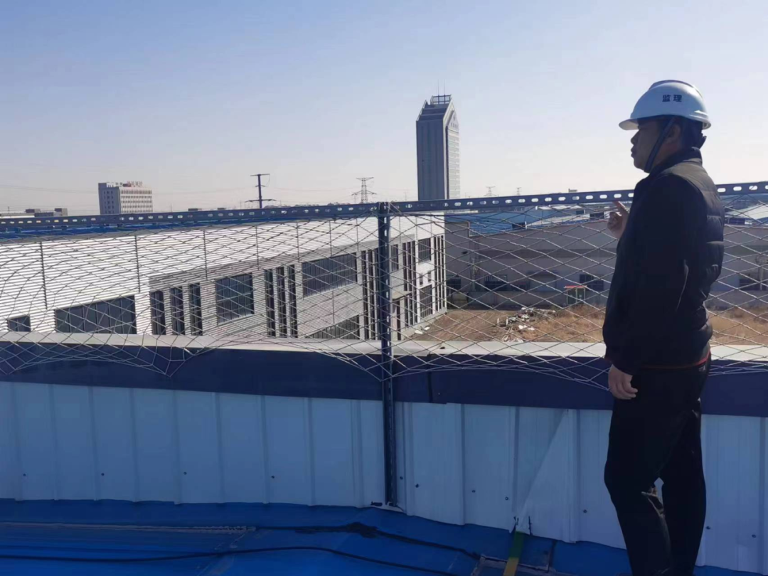 现场屋脊处女儿墙的高度不够,不符合安全要求,全部做了防护处理,确保施工安全。