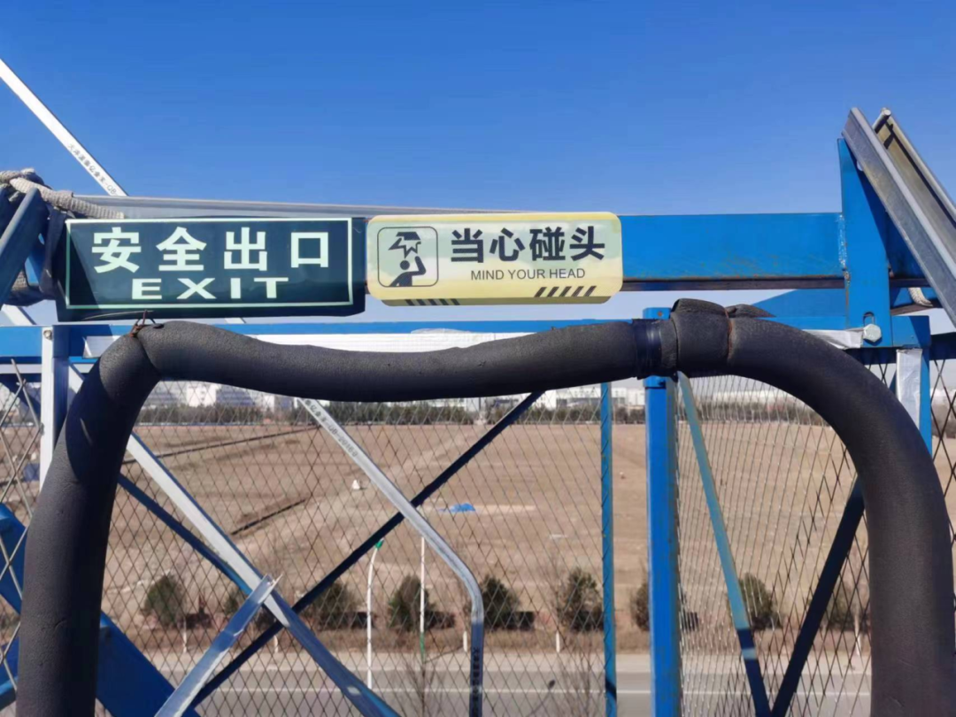 采用预加工的标准化梯笼做为屋面上下通道。增强了爬梯的稳固性,确保了工人上下屋面的施工安全,避免坠落危险。