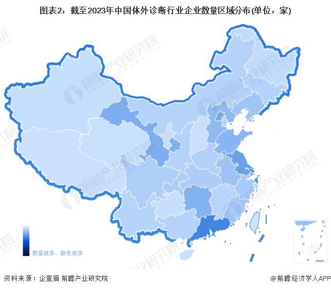 从区域分布来看,目前中国体外诊断行业企业主要分布在广东地区,截至2023年5月22日,广东省共有体外诊断行业企业数694家,占全国体外诊断行业企业数量的11.87%。