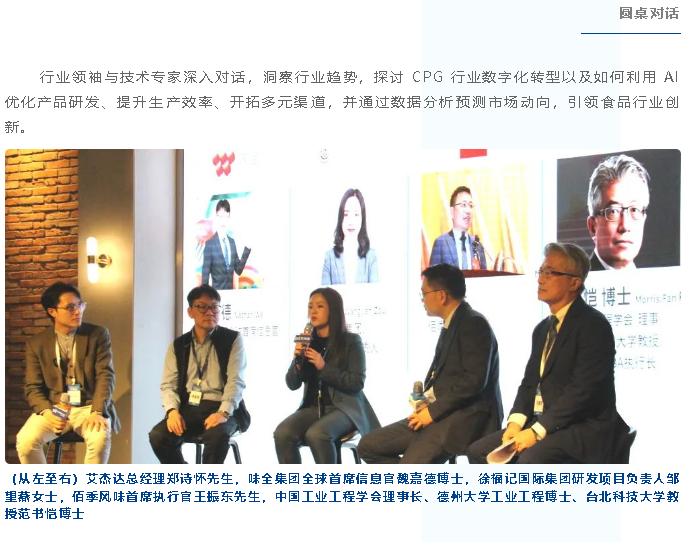 3 月 15 日,艾杰达“AI 时代的新机遇 - CPG 行业实践思享坊”在和煦春日如约而至。此次盛会不仅聚集了近百位业内佼佼者 - 企业高管、信息化掌舵人以及战略智囊,更是吸引了味全、徐福记、佰季风味等业界巨头,以及中国工业工程学会、台北科技大学工业工程与管理系暨管理学院等专家学者共同探讨 AI 技术在 CPG 行业的落地应用与创新。