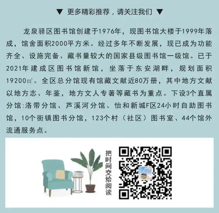 2024年3月12日——2024年3月17日,龙泉驿区图书馆在总馆一楼阳光阅览区开展了绿色名片——中国市树文化展,让读者们通过展览,去了解市树的文化内涵及优秀传统树木文化。
