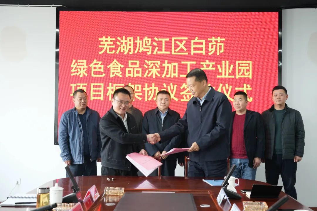 永莱控股董事长张志明、副总裁石书林,芜湖市鸠江区白茆镇党委书记曹高峰、镇长汪赵平、人大主席董亚飞,鸠江区农业农村局局长倪翊等领导参加了即日举行的签约仪式。