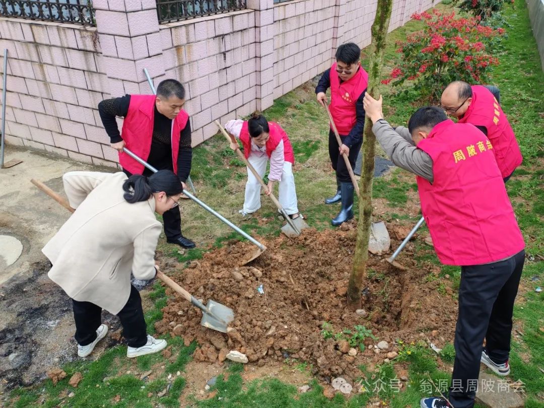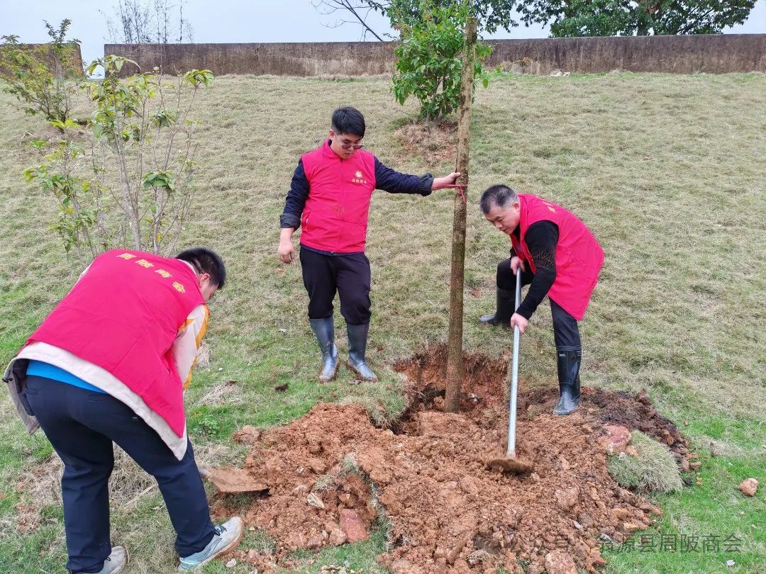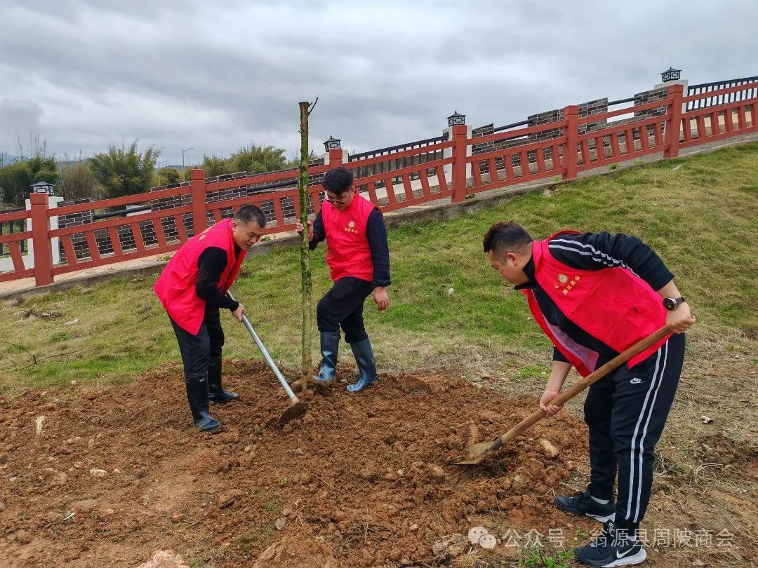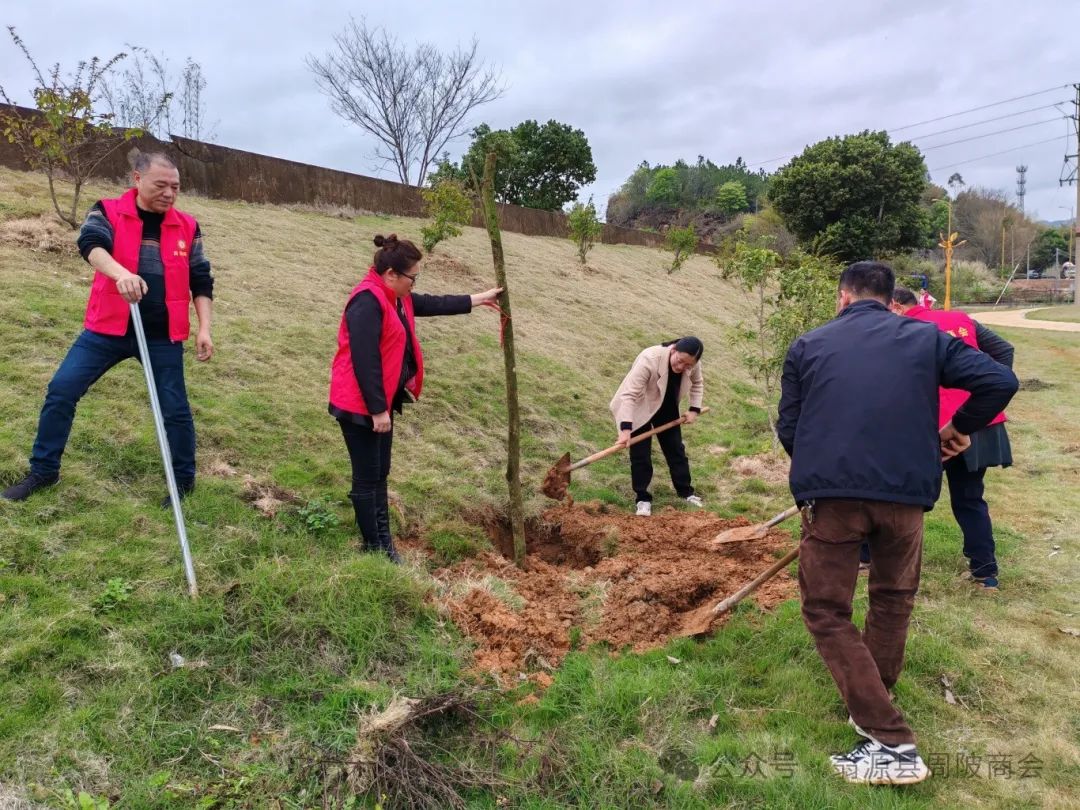 又是一年芳草绿,义务植树添新彩。为深入学习贯彻习近平生态文明思想,切实加强生态环境保护建设,增强党支部凝聚力,以高质量党建助力绿美翁源建设。近日,翁源县周陂商会党员代表、理事代表以及会员代表一行前往周陂镇陈璘公园开展“2024年全省绿美广东生态建设义务植树主题党日活动”。周陂镇镇长马宾、宣传委员邓菲玉现场指导。共同担起组织责任,传承雷锋精神,助力翁源生态建设,为翁源推动“百千万工程高质量发展”添一抹绿,加一点彩!