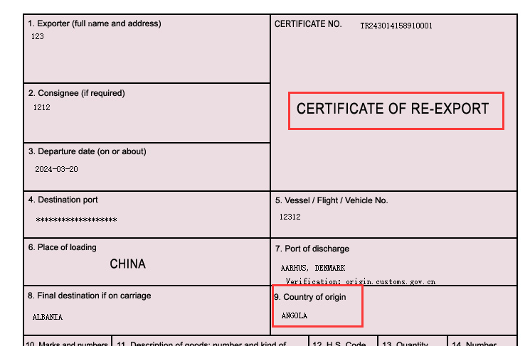 我们看看中国签发的转口证明,长这样的,第9栏就是原产国。