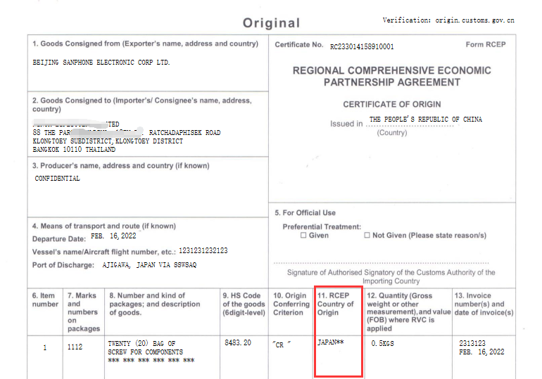 我们再看看中国签发RCEP原产地证书,原产国为日本。