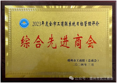 热烈祝贺赣州市犹江商会荣获2023年度全市工商联系统“综合先进商会”荣誉称号