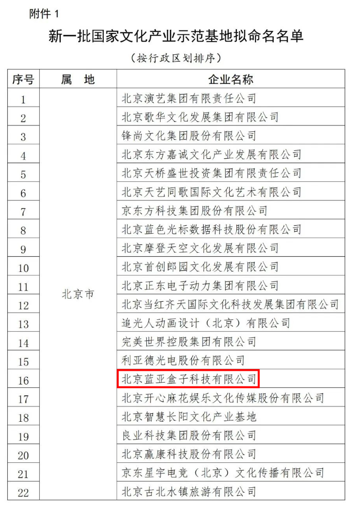 最新发布的国家文化产业示范基地评选与复核结果中,北京蓝亚盒子科技有限公司(以下简称"LAYABOX")榜上有名。