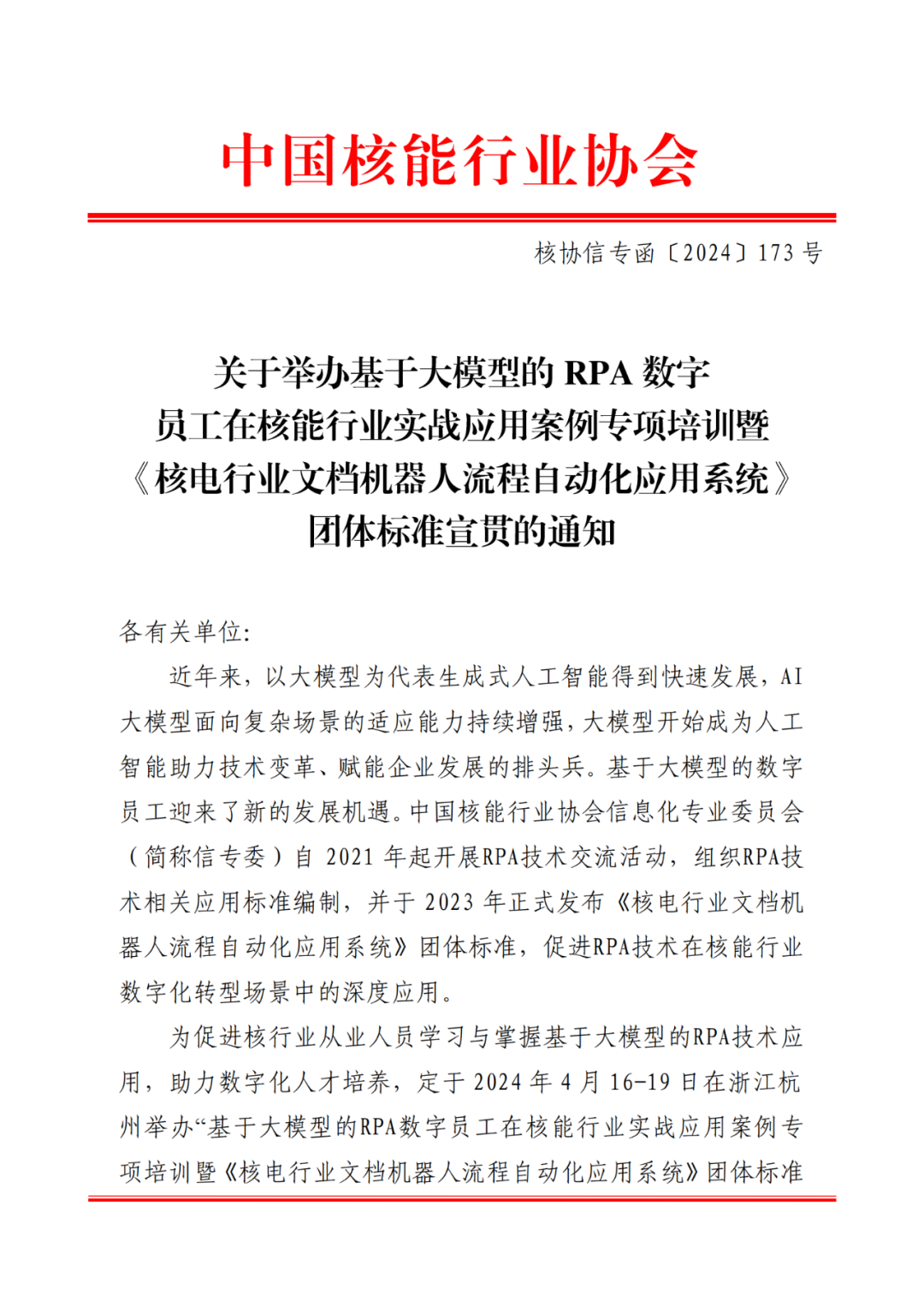 基于大模型的RPA数字员工在核能行业实战应用案例专项培训
