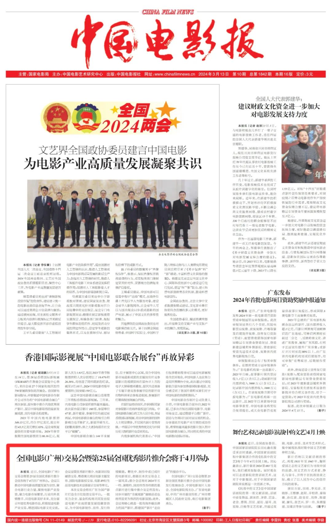 近日,全国电影(广州)交易会暨第25届全国优秀影片推介会宣布将于4月在广州举办。会议以推动中国电影高质量发展为宗旨,聚合电影行业力量,聚焦电影产业投资,聚力电影市场繁荣,行业内外真情携手,共创电影美好未来,充分展示年度优秀电影作品,积极促进电影产业交易,增进国际电影文化交流。会议设置优秀影片推介、电影项目投融资交易、粤港澳大湾区电影主题发布、国际电影版权交易、电影IP/衍生品及电影技术设备展示交易等单元。