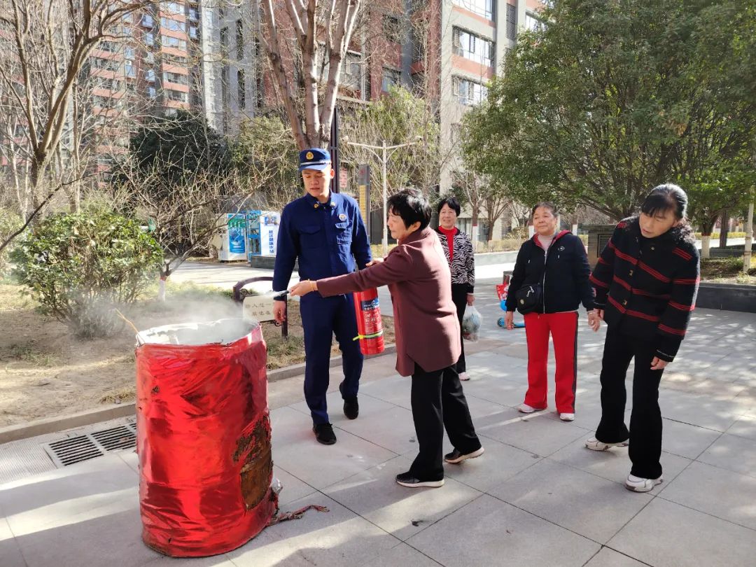 演练开始前,市消防救援大队工作人员为参演和观摩人员进行了消防安全知识培训,着重讲解了灭火器的种类分类、日常维护、使用方法及火灾自救措施等,结合实际案例普及了日常生活中的防火、灭火等消防安全知识,并现场指导物业工作人员、业主代表正确使用灭火器进行灭火,通过演示、体验等方式让大家更好的掌握灭火器的使用要领,提高全体参演人员的消防安全意识及自救能力。