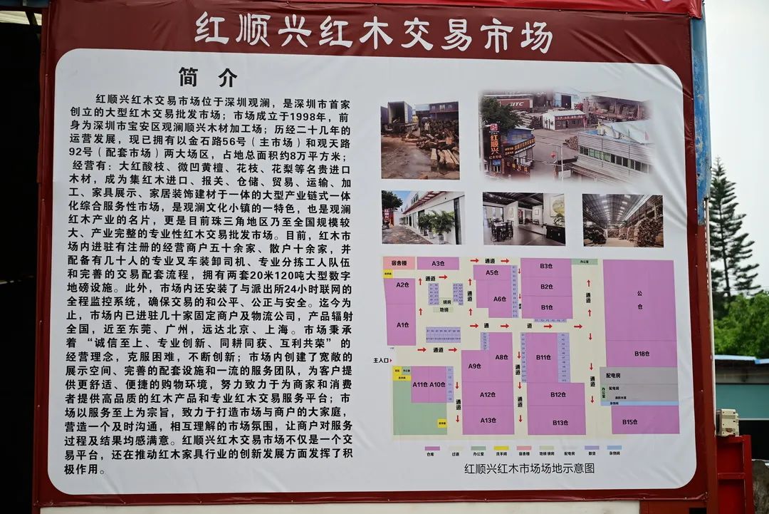 深圳市仙游商会会长王伟领旗下的红顺兴红木交易市场位于深圳观澜,是深圳市首家创立的大型红木交易批发市场;市场成立于1998年,前身为深圳市宝安区观澜顺兴木材加工场;历经二十几年的运营发展,现已拥有以金石路56号(主市场)和观天路92号(配套市场)两大场区,占地总面积约8万平方米;经营有:大红酸枝、微凹黄檀、花枝、花梨等名贵进口木材,成为集红木进口、报关、仓储、贸易、运输、加工、家具展示、家居装饰建材于一体的大型产业链式一体化综合服务性市场,是观澜文化小镇的一特色,也是观澜红木产业的名片,更是目前珠三角地区乃至全国规模较大、产业完整的专业性红木交易批发市场。