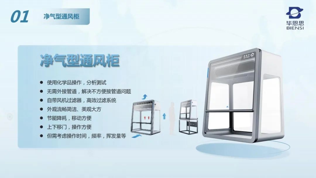 主要生产和经营净气型通风柜、天平称量罩、高活隔离罩、试剂终端管理系统、净气型药品柜、智能药品柜、净气型危化品柜、智能危化品柜、病理冷藏柜、防火净气型药品柜、PP净气型药品柜、易燃品毒害品柜、化学品安全柜、强酸强碱存储柜、气瓶安全柜、小型实验室废液暂存柜等系列产品。