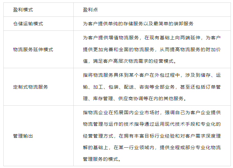 第三方物流企业主要的盈利模式及盈利点
