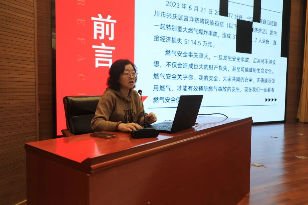 会上,由行业专家刘晨老师就经营场所瓶装液化石油气使用常见风险点、燃气生产安全典型事故案例分析、事故应急处置等专业知识对参会人员进行培训,并组织参会人员观看了《餐饮场所消防安全培训片》《湖北省十堰613重大燃气爆炸事故警示教育片》。