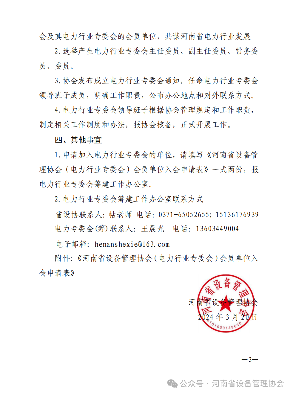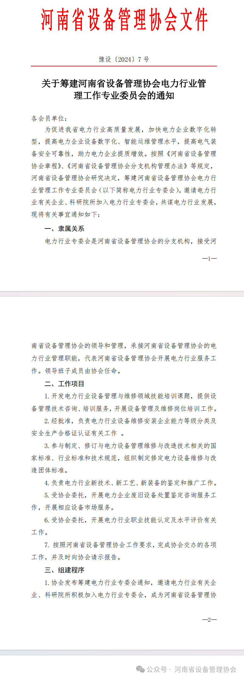 关于筹建河南省设备管理协会电力行业管理工作专业委员会的通知
