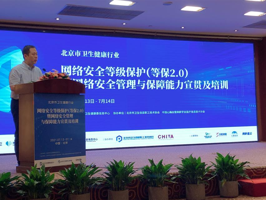 曾红涛调研员以行业网络安全风险分析和对策为题做了大会演讲,分别从我国卫生行业网络安全现状、医院信息系统面临的安全风险及下一步具体要求三方面做了工作部署。他特别指出了各医疗卫生机构需要加强领导、落实主体责任,在新形势下关注态势感知,做到主动防御,加强人才培养,探索网络安全合作运维的多种运维模式,筑牢安全基座,落实密码管理相关要求。他同时提到,要依托专业网络安全厂商提供专业的网络安全服务,辅助医疗卫生机构的人员能力成长,建议各个医疗机构建立自身的态势感知系统,并对网御星云参与建设的北京市医疗卫生机构网络安全监管测试平台对市所辖医疗机构的补充指导作用给予充分肯定。