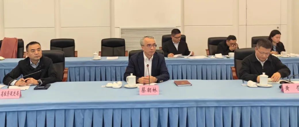 贵州省人民政府副省长蔡朝林(中)、省政府副秘书长黄营(右)、省投资促进局局长谢强在座谈会上