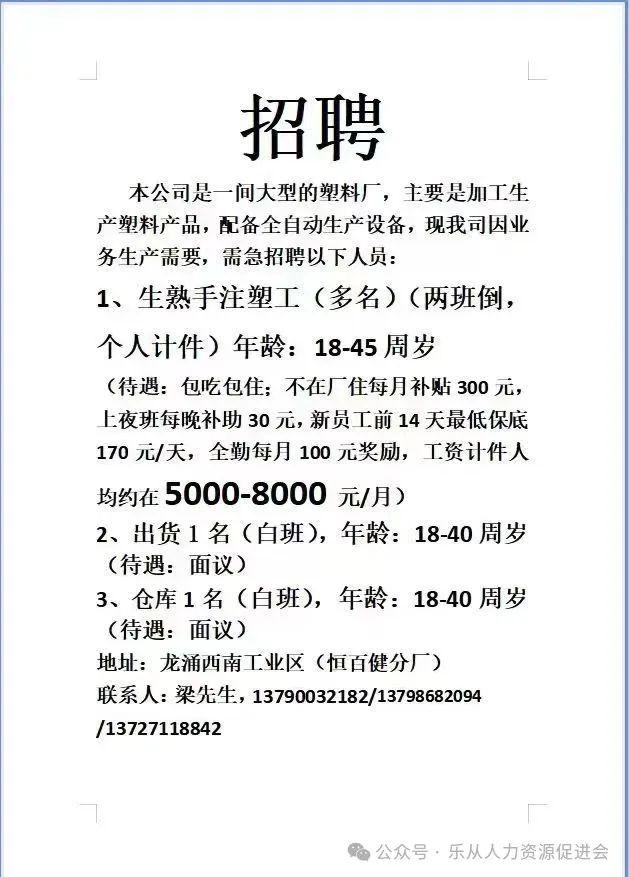 岗位要求:1、身体健康,五观端正,服从工作安排,吃苦耐劳,女38岁以下,男42岁以下,高中及以上文凭,大专及以上学历优先录用;