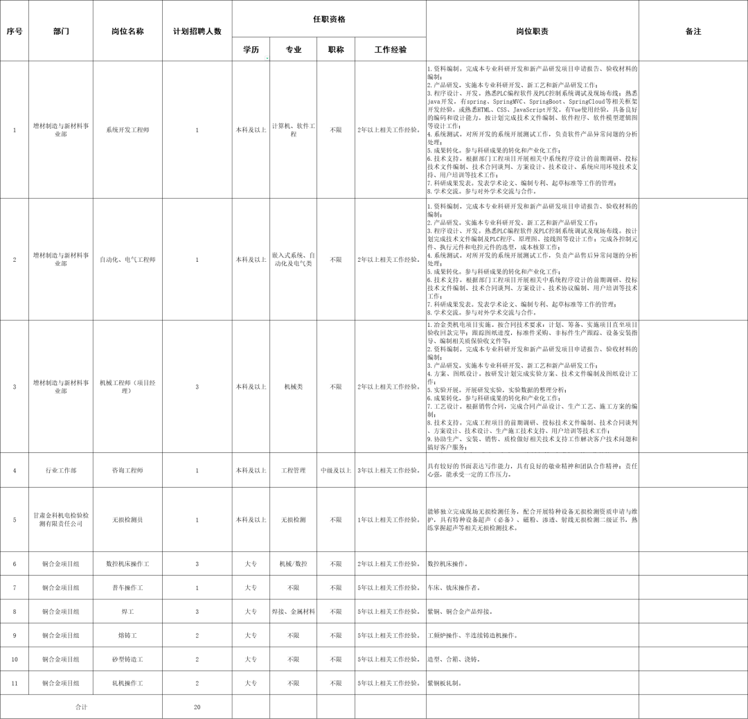 甘肃省机械科学研究院有限责任公司2024年人员招聘计划表.xls