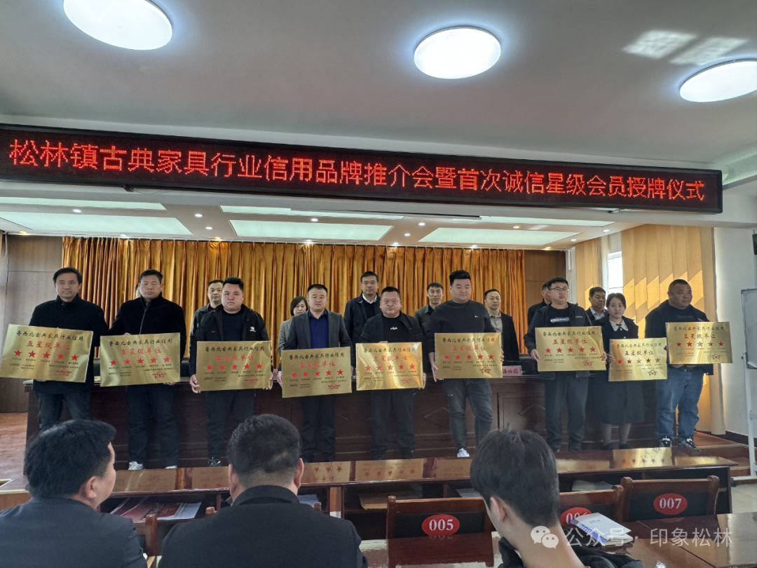 为进一步推进社会信用体系建设,促进松林镇辖区古典家具行业信用品牌形成,用实际行动践行“信用松林”,培育企业优质发展,实现更加诚信、更加公平、更可持续的发展之路。3月20日,松林镇古典家具行业信用品牌推介会暨首次诚信星级会员授牌仪式在我镇会议室举行,临清市社会信用体系建设领导小组办公室副主任张富刚、松林镇党委书记解星、市场监管所负责人李伍振、临清市古典家具商会会长张省清、松林镇商会会长任广禄,以及相关镇科级干部和松林镇企业家(商户)120余人参加会议,镇党委副书记刘春燕主持会议。