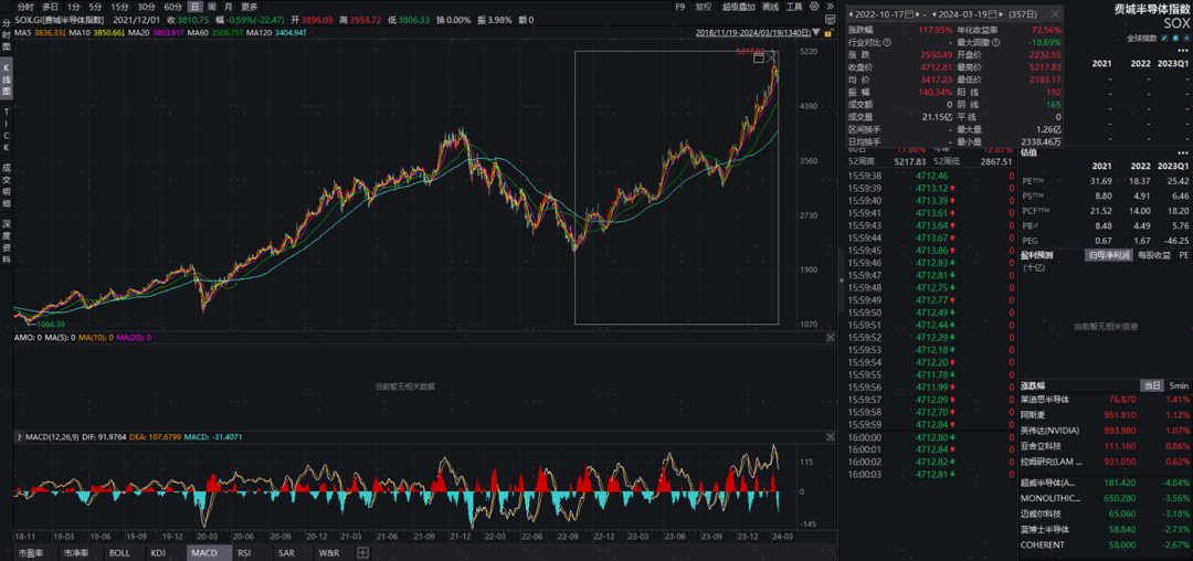 自2022年10月开始,费城半导体指数阶段性触底反弹,目前已上涨超过1年半,涨幅达到117%。
