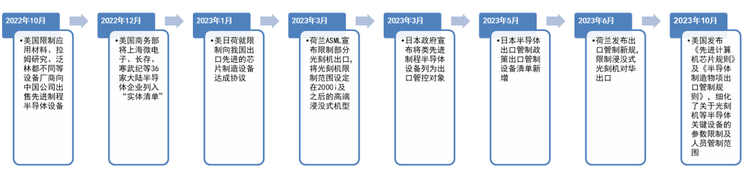 自2022年10月以来,美国、日本和荷兰等西方国家已合作实施出口管制政策,对中国半导体设备和技术出口进行了限制。在这一过程中,美国首先推出了《出口管制措施》,禁止半导体设备制造商向中国公司销售先进制程的半导体设备。接着,在2023年1月,美国、日本和荷兰达成共识,将美国的一部分出口管制政策扩展到荷兰的ASML、日本的尼康和东京电子等公司。