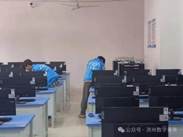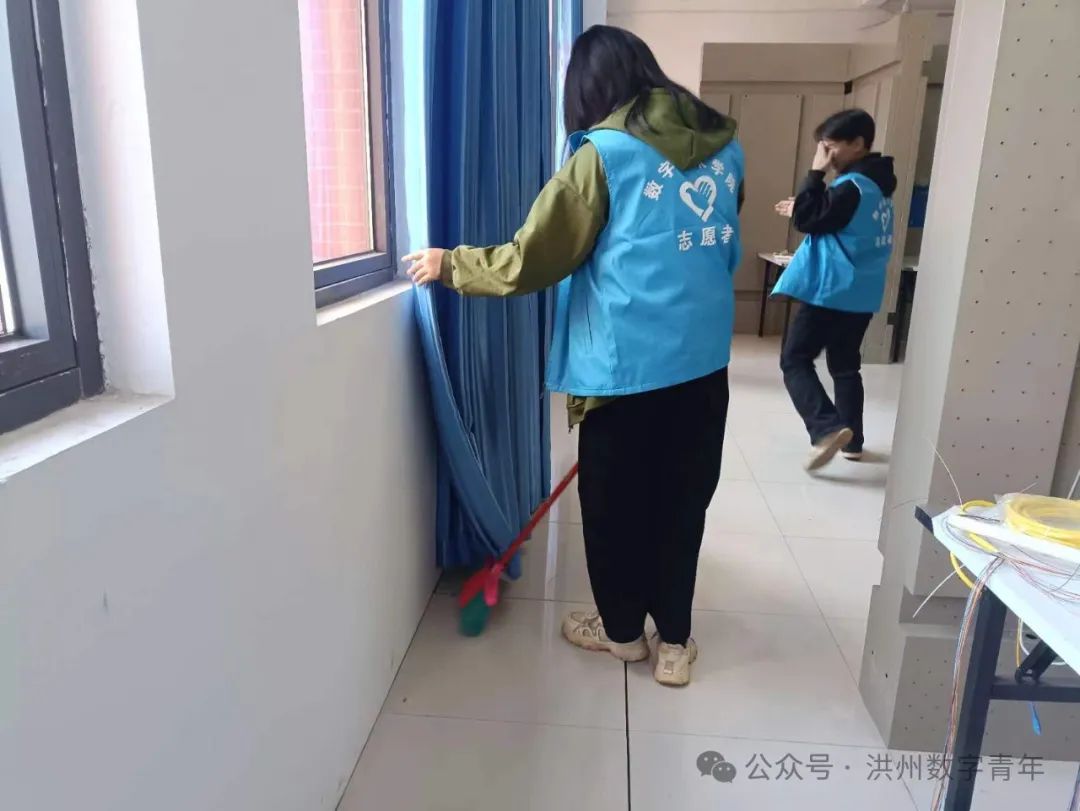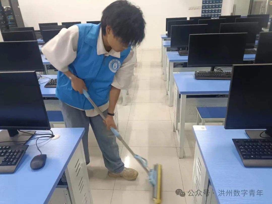 活动中,志愿者们分工明确,协调配合,分区清扫实训室。每个角落都能看到志愿者劳动的身影,无论是清洁地板还是擦拭桌椅,大家都细致入微,他们积极完成各自的任务,确保实训室每个地方都得到了妥善的清理。