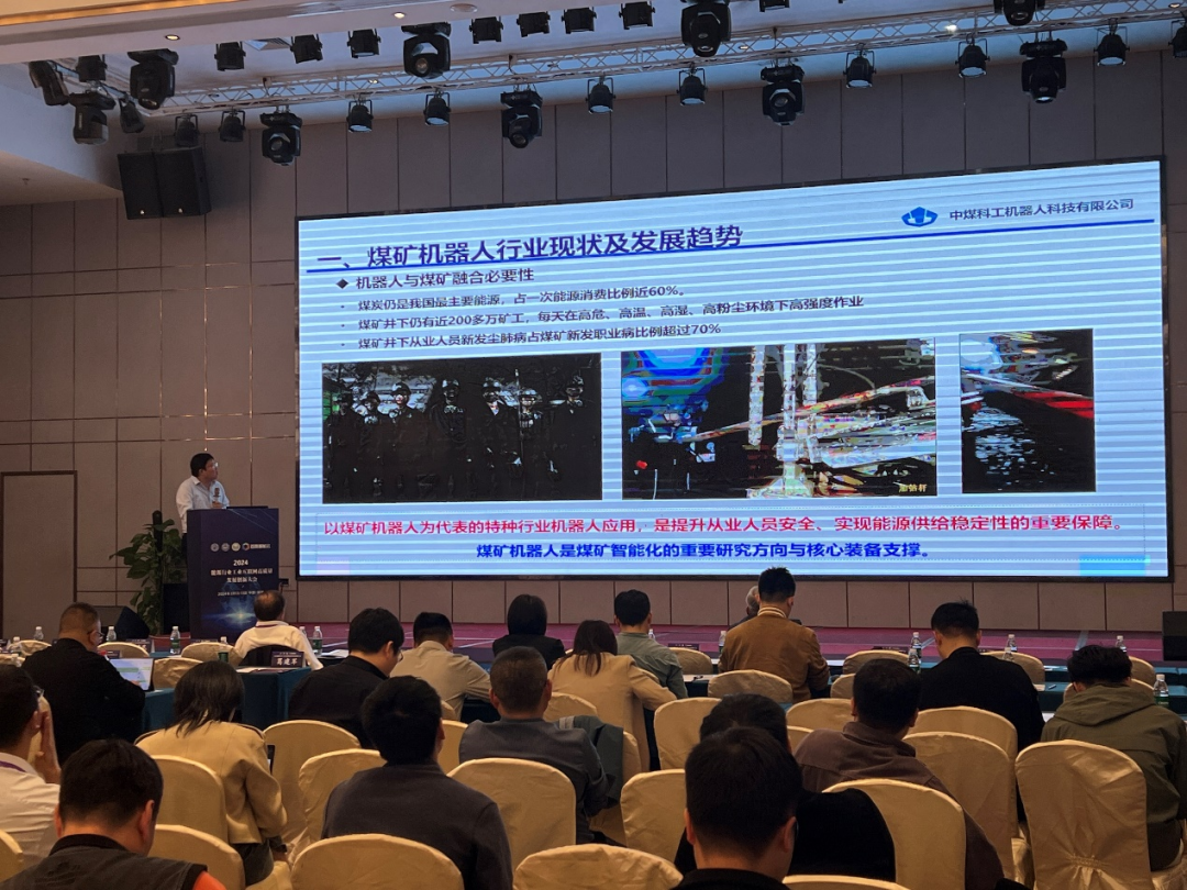 中煤科工机器人科技有限公司副总经理、中国煤炭科工集团首席科学家、中国“机器人+矿山”产业协同推进方阵主任、工信部煤矿机器人产业技术基础公共服务平台主任王雷受邀参加本次会议,并做“煤矿机器人研发应用及产业发展新思考”主题报告。