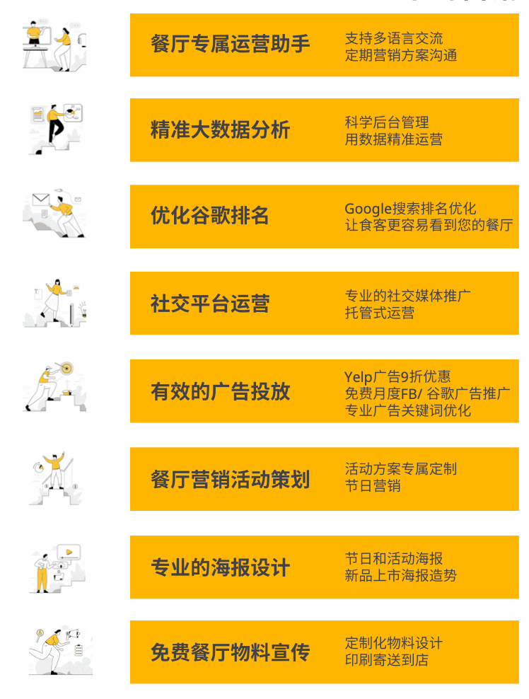 MenuSifu 拥有一支专注打造餐厅品牌形象的客户成就队伍,我们为商家提供专为餐厅打造的市场营销服务和流量运营服务,助力餐厅更上一层楼!