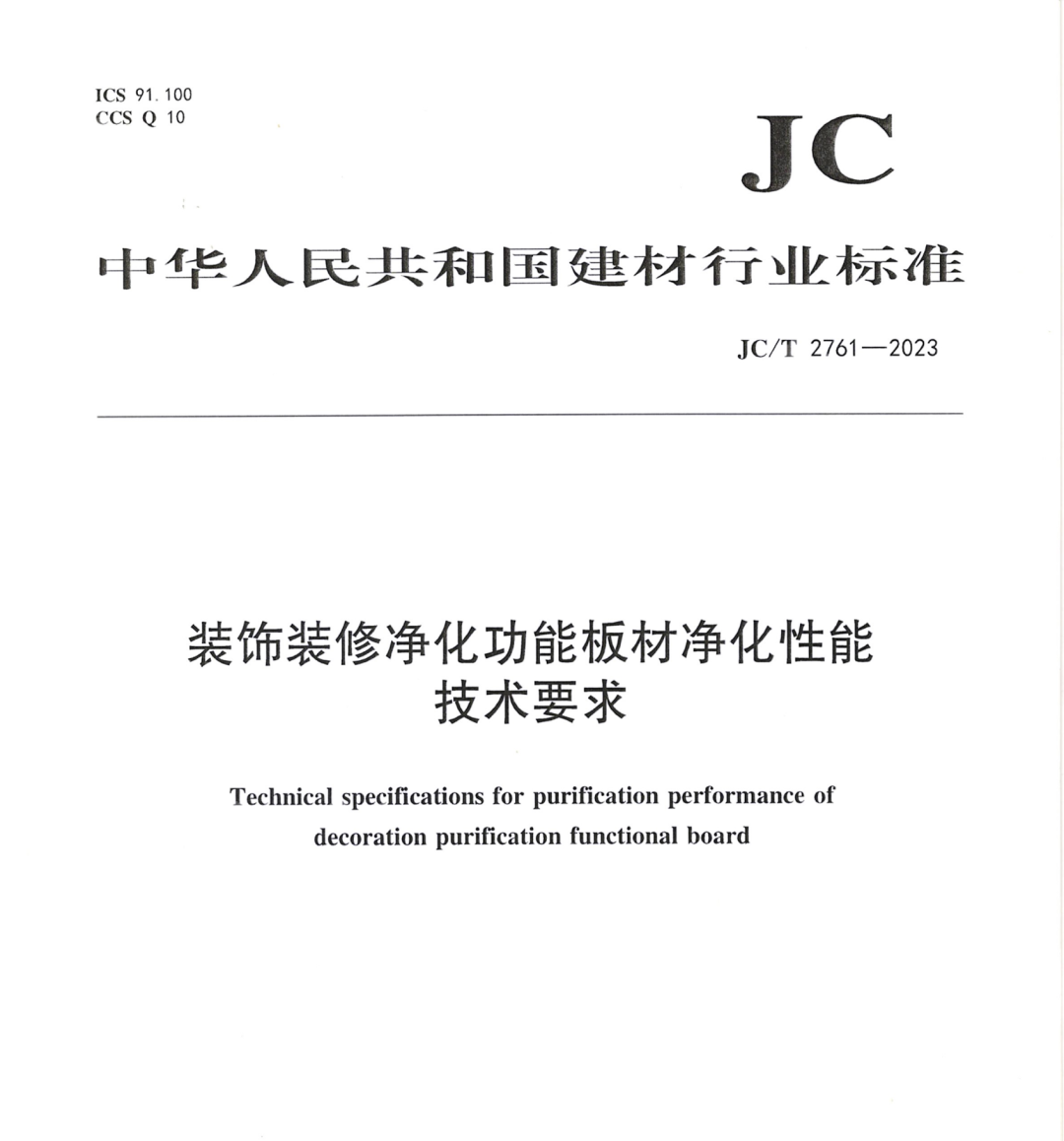 健康人居,标准先行。近日,安星建设集团编制的行业新标准《装饰装修净化功能板材净化性能技术要求》(JC/T 2761—2023)经国家市场监督管理总局、国家标准化管理委员会批准,将于2024年7月1日正式实施。