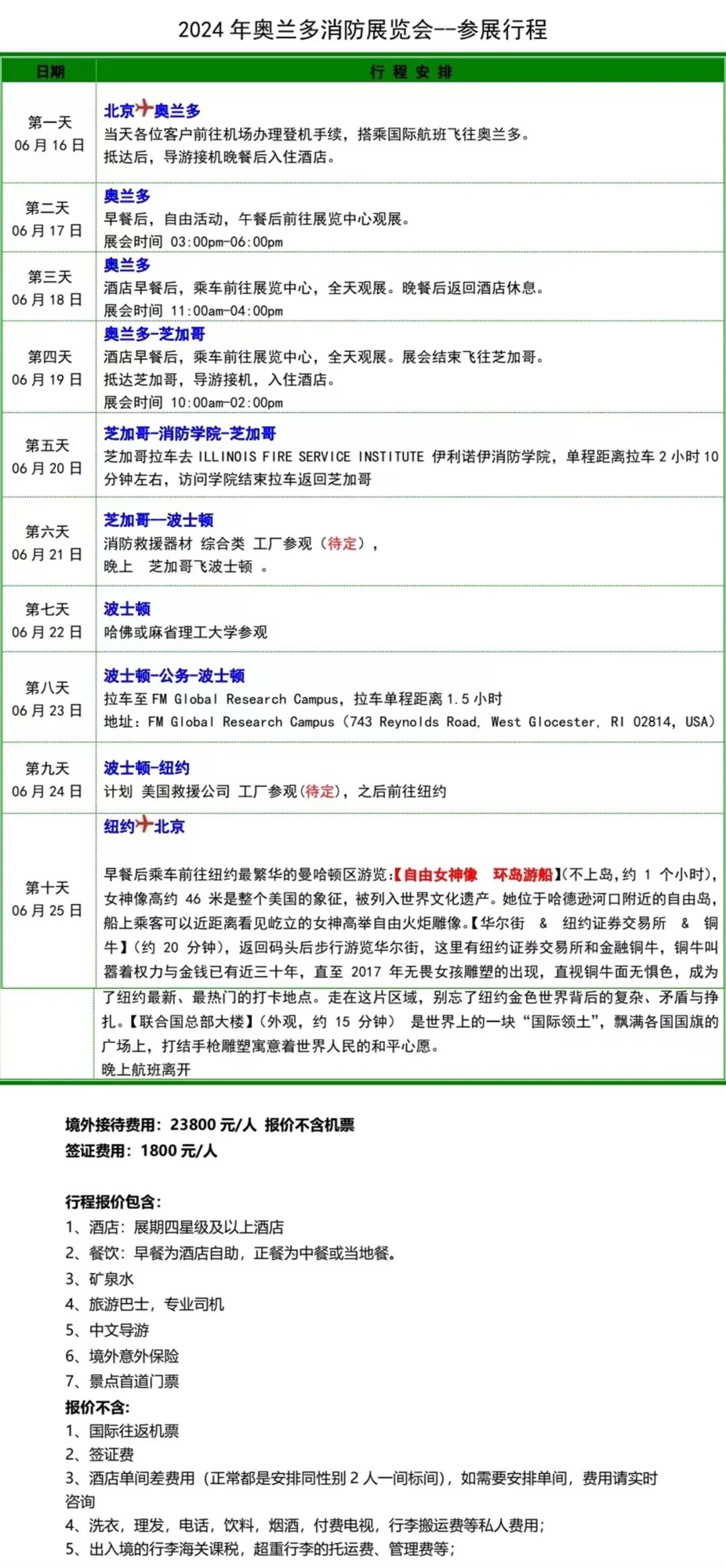 3、机票及税金(预估价格):人民币 21000 元/人(机票价格实时变动,此价格为 2 月底查询机票价格,不含美国内陆段行李托运费,以出票时价格为准)。