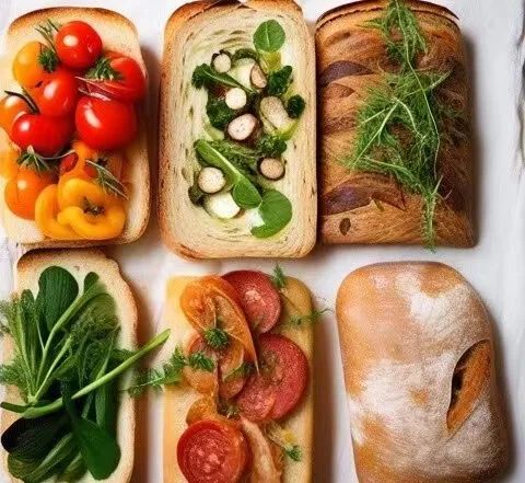 轻食面包通常指的是低热量、低脂肪、低糖或使用全谷物等健康食材制作的面包。它们通常比传统的白面包或甜面包更健康,适合追求健康饮食或减少摄入热量的人群。轻食面包的种类繁多,包括全麦面包、黑麦面包、燕麦面包、无糖面包等。这些面包通常口感较为紧实,营养丰富,含有较多的纤维和维生素,有助于提供长时间的饱腹感。